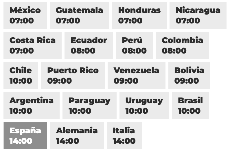 Si quieres conocer el horario en tu región o país haz clic aquí.