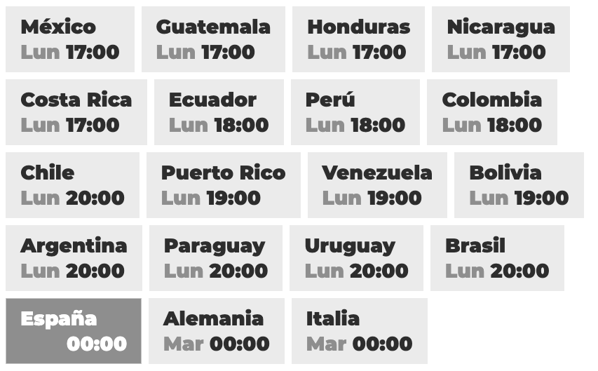 Si quieres conocer el horario en tu región o país haz clic aquí.